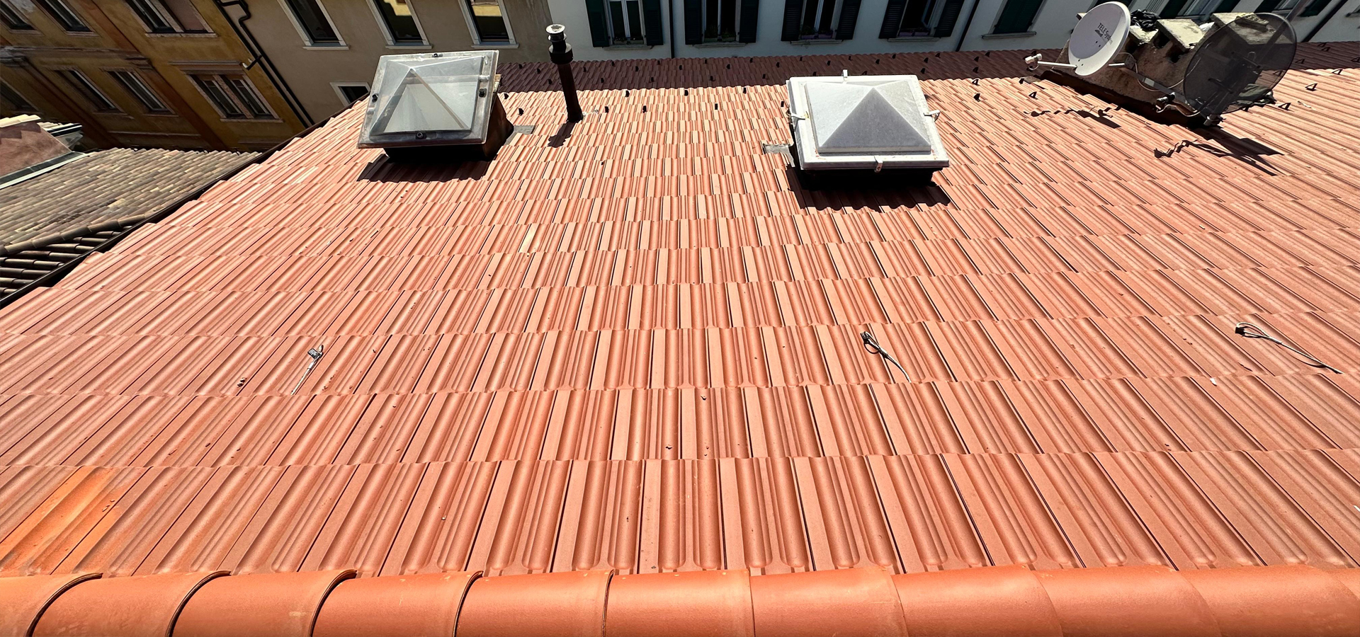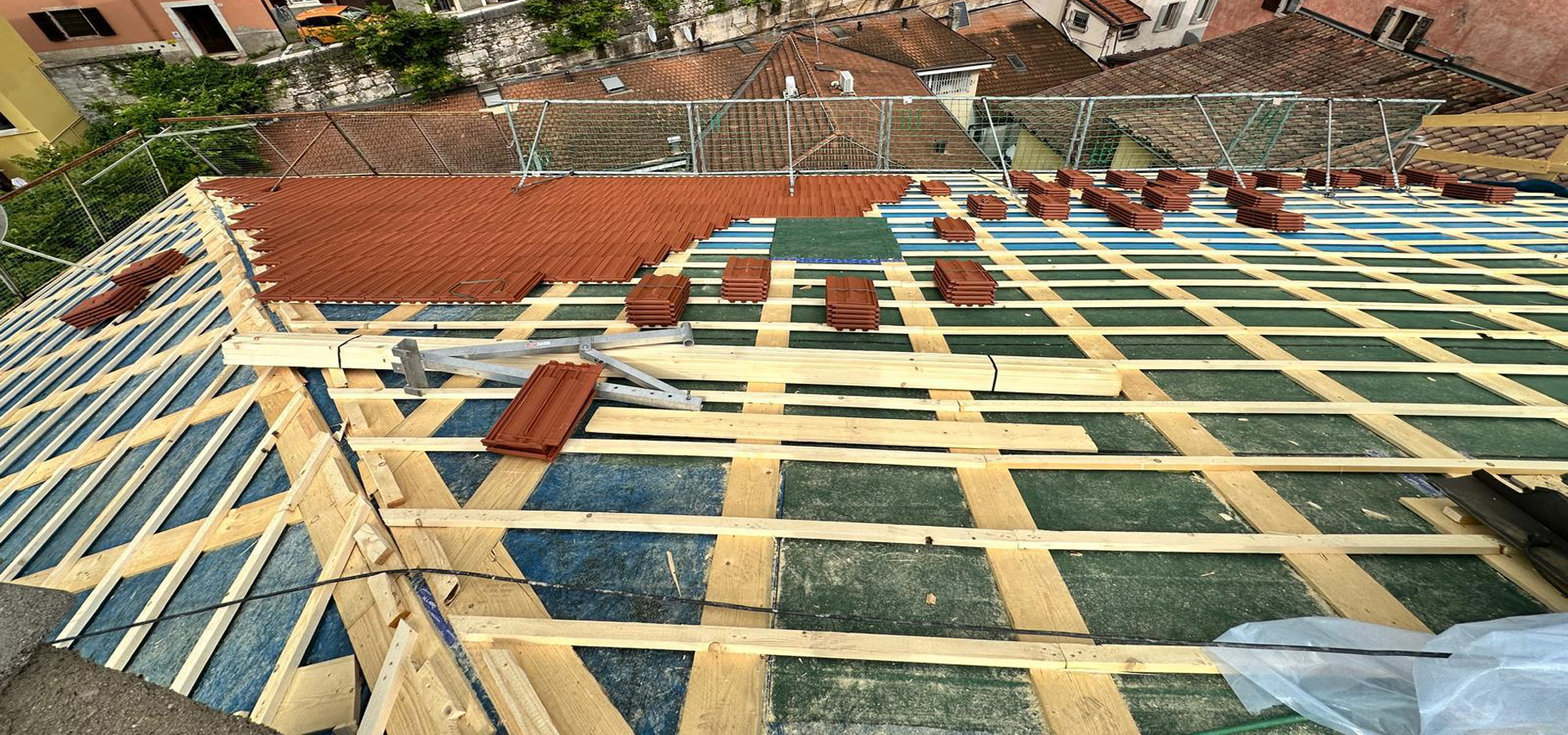 Siamo orgogliosi di presentare i nostri lavori, che spaziano dalla realizzazione della struttura del tetto alla posa dell'isolamento e delle tegole, fino all'installazione di scossaline e lucernari. Ogni fase del nostro lavoro è pensata per garantire durabilità, sicurezza e un risultato estetico perfetto.